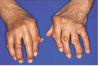 피부 아래, 특히 관절 주변에 피하 결절이 발생할 수 있습니다. 뼈가 튀어나오거나 관절의 한쪽이 만져지는 류마티스 결절이 발생합니다. 이러한 결절은 단단하고 압통이 없습니다. 결절이 흔히 나타나는 부위로는 팔꿈치, 손가락, 발뒤꿈치가 있습니다.