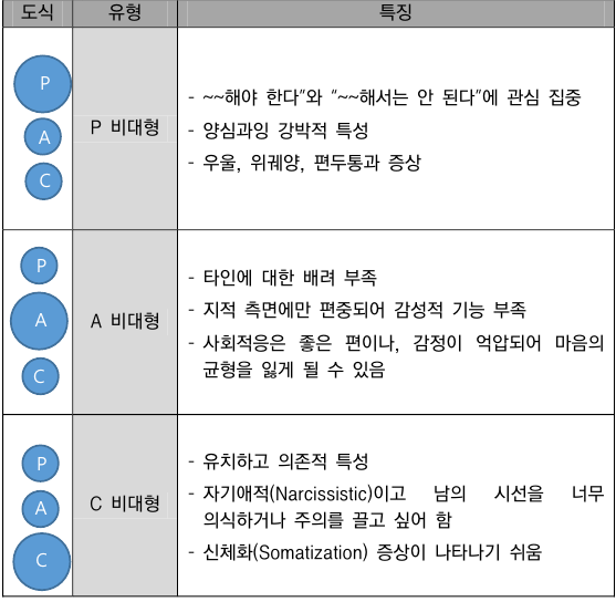 - 세 가지 자아상태 중에서 어느 것이 주도권을 잡고 있는가?(나는 P주도형인가, A주도형인가, C주도형인가?)