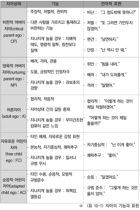 기능: 자아 상태가 어떻게 활용되는가를 말하는 것으로 구조분석을 기능적으로 세분화합니다.